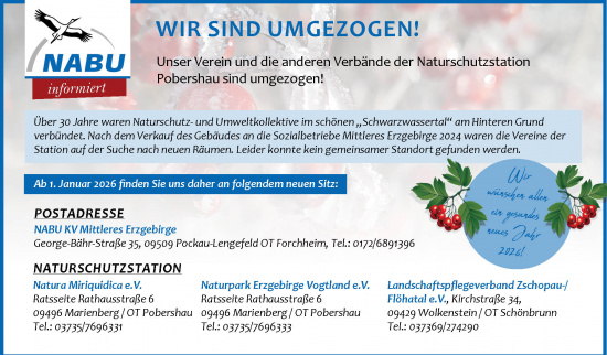 Unser Verein und die anderen Verbände der Naturschutzstation Pobershau sind umgezogen!